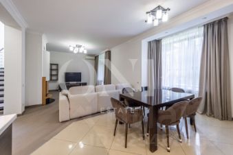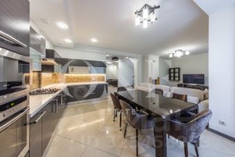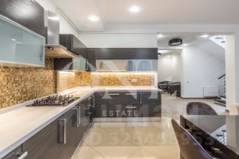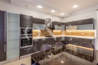 Кухня-столовая, оборудована всей необходимой встроенной техникой: большой холодильник, отдельная морозильная камера, микроволновка, жаровой шкаф, стиральная машинка, спальни и коридоры с мебелью, есть отдельная гардеробная комната, 2 балкона, выход на террасу.