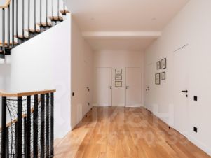 4 Спальни, 4 санузла, кухня, столовая, гостиная, рабочее пространство, игровая зона и гараж. Интерьер и мебель выполнены с использованием натуральных материалов — дерева и камня, в гостиной является камин. Интерьер выполнен в минималистичном стиле, где сочетаются свет, воздух и чистота линий. 1-ый этаж имеет открытую планировку с кухней, столовой и гостиной с камином — идеальное пространство для семейных вечеров и приёма гостей. На 2-ом этаже расположена мастер-спальня с собственной ванной комнатой и гардеробной, а также три детские спальни, две из которых выполнены в двухуровневом формате. 3-ий этаж полностью отведён под игровую и рабочую зону, что позволяет комфортно разделить отдых и рабочие процессы. В доме предусмотрены просторные гардеробные, отдельная хозяйственная комната и вместительные системы хранения, органично интегрированные в интерьер. Высота потолков — до 4 метров, что усиливает ощущение свободы и объёма. В интерьере использована мебель индивидуального изготовления, установлена бытовая техника немецкого производства, система климат-контроля. Особое внимание уделено зонам отдыха: двухуровневая веранда становится естественным продолжением дома и идеально подходит для утреннего кофе, летних ужинов и спокойных вечеров на свежем воздухе. Терраса выходит в зелёную зону, создавая атмосферу уединения и приватности. Участок площадью 1 сотка, есть гараж. Территория поселка закрытая и благоустроенная, с детскими площадками и лесной прогулочной зоной. Удобная транспортная доступность — около 10 минут до МЦД-2 (D2).
