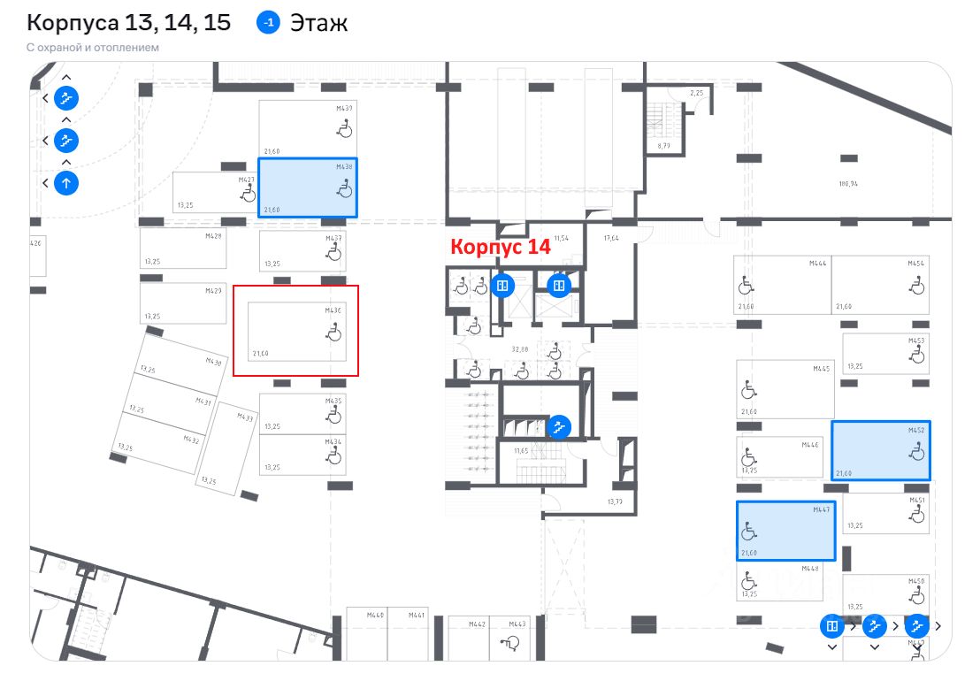Расположен на -1 этаже у лифтовой зоны (корпус 14), проектный номер 436