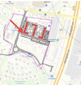 Помещение располагается на первой линии жилого комплекса, в центре жилого массива. Рядом с помещением будет находиться супермаркет, школа и детский сад.