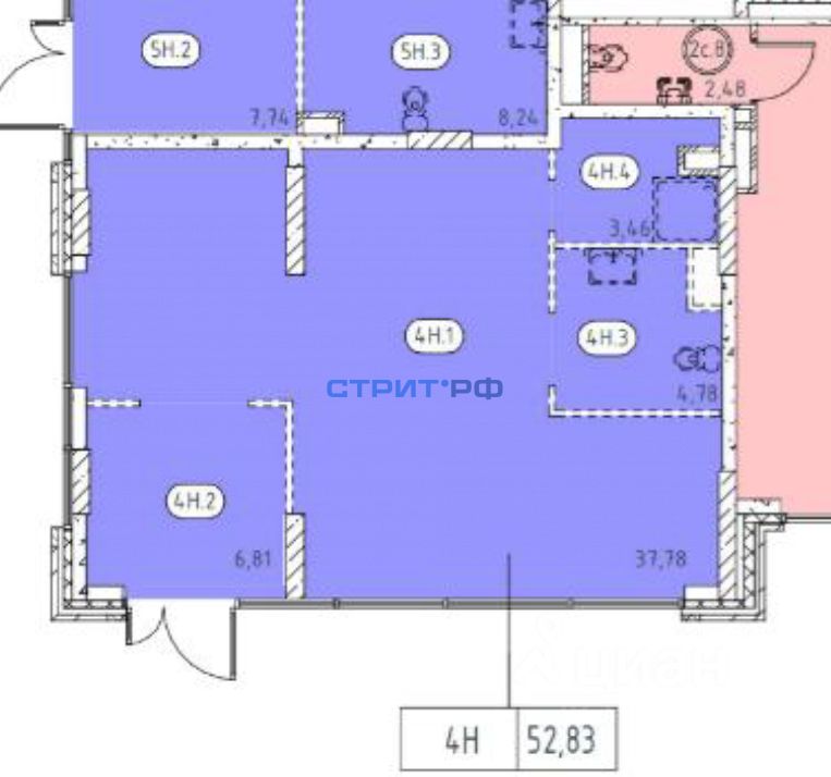 Общая площадь 52,83 м2;