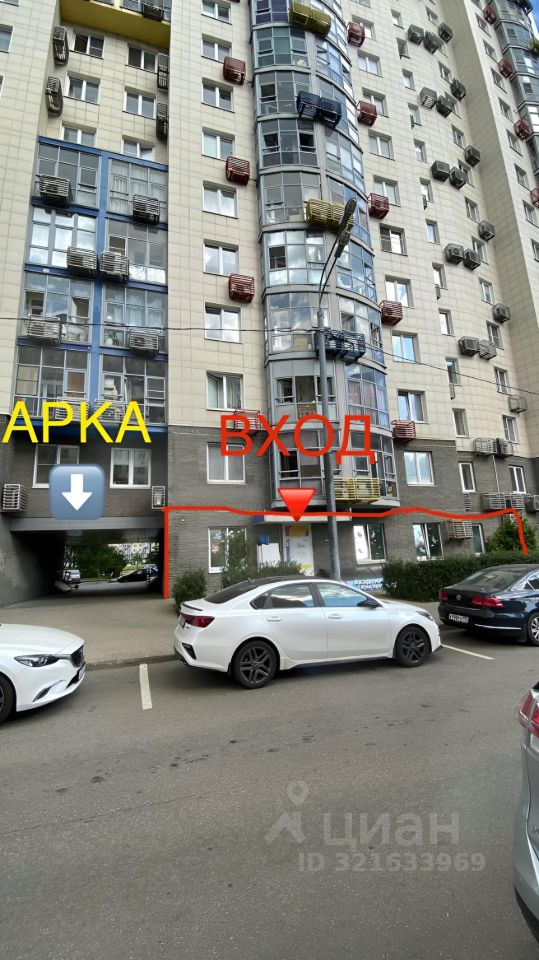 Вход в помещение расположен рядом с проходной аркой в жилой массив.