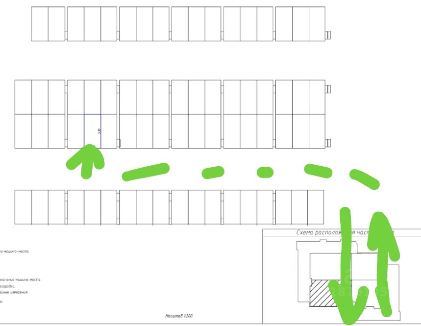 Машиноместо N 198 в подземном паркинге ЖК Митино парк. При въезде слева, со стороны подъездов 3, 4, 5.