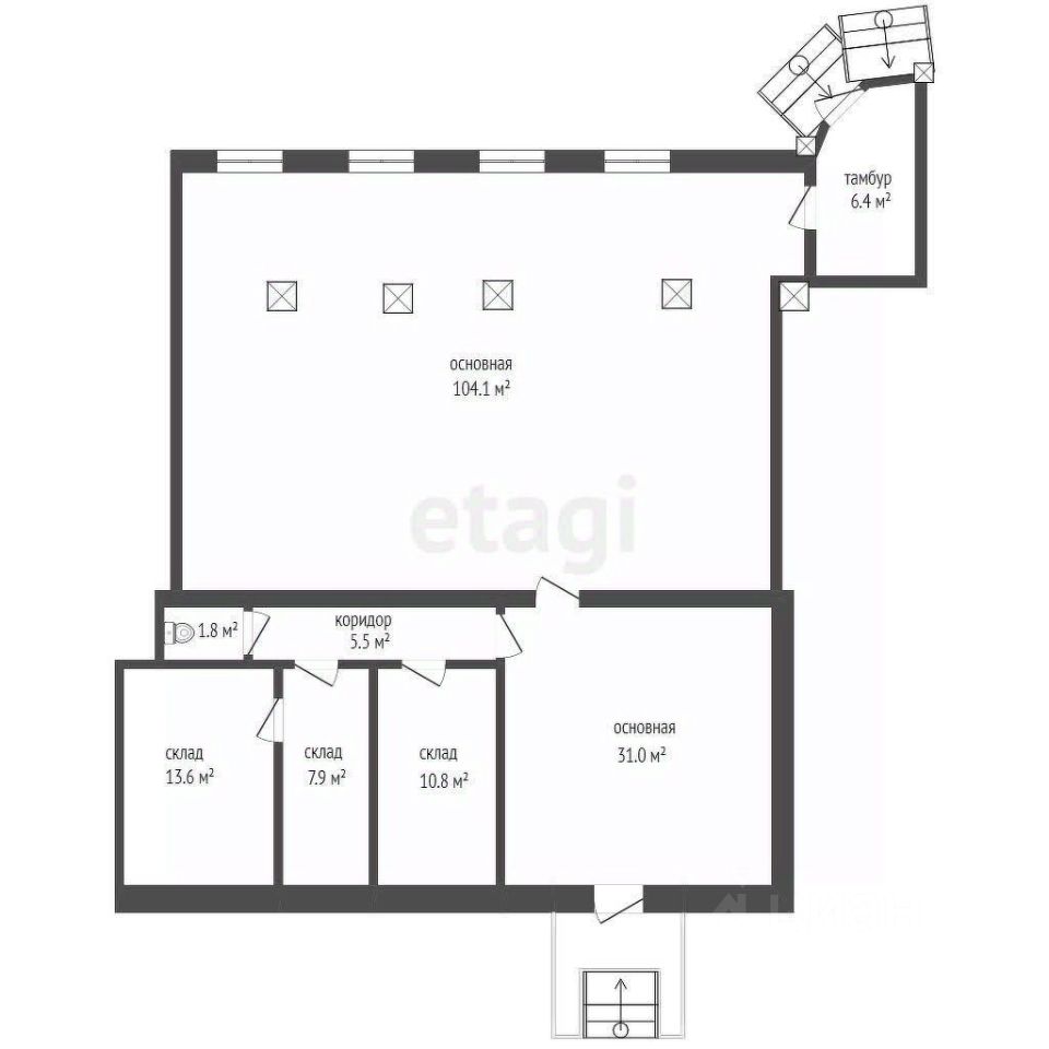 - Два входа: для покупателей и сзади дома зона разгрузки-погрузки
