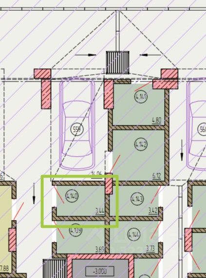 Площадь кладовки 3,44 кв.м., ориентир рядом машино-место 559. Кладовка расположена около лифтов.