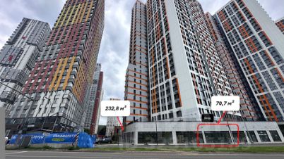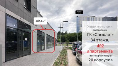 Помещение в стилобате напротив бизнес-центра и пешеходного перехода к нему, в прямой видимости от остановки, на выезде из района в сданном корпусе.