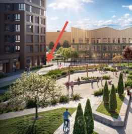 Помещение располагается на первой линии жилого комплекса на пешеходном бульваре, в центре жилого массива, рядом детский сад и супермаркет.