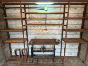 - Верстальный стол, 2 стеллажа, 3 розетки 220в, 1 розетка 36в.