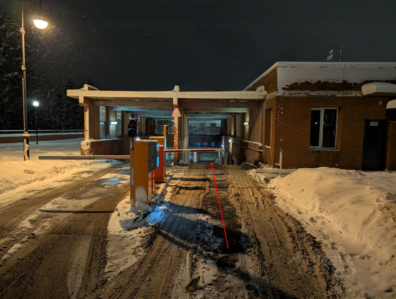 Въезд в секцию паркинга прямо по прямой после шлагбаума