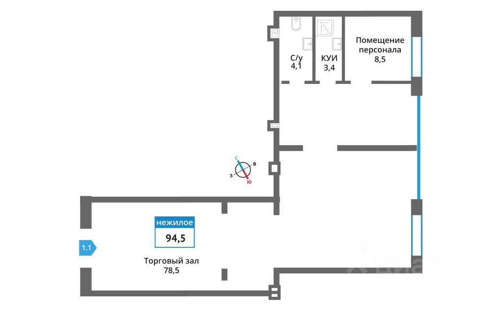 Помещение свободного назначения, 94,5 м²