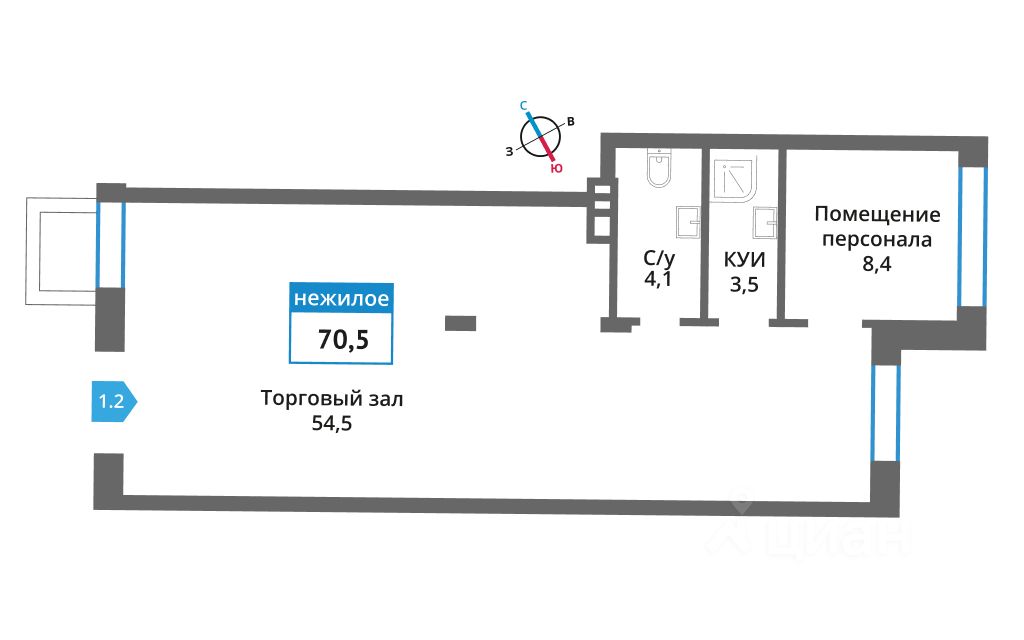 Помещение свободного назначения, 70,5 м²