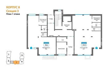 Лот 1070180 Продажа коммерческого помещения в новостройке: 108,90 кв. м., 1 этаж в комплексе Никольский квартал Отрада, 1 очередь, корп.8, сдача: 4кв. , этажей: 9, адрес Красногорск г., Опалиха мкр., д. 8, Застройщик: ГК Отрада.