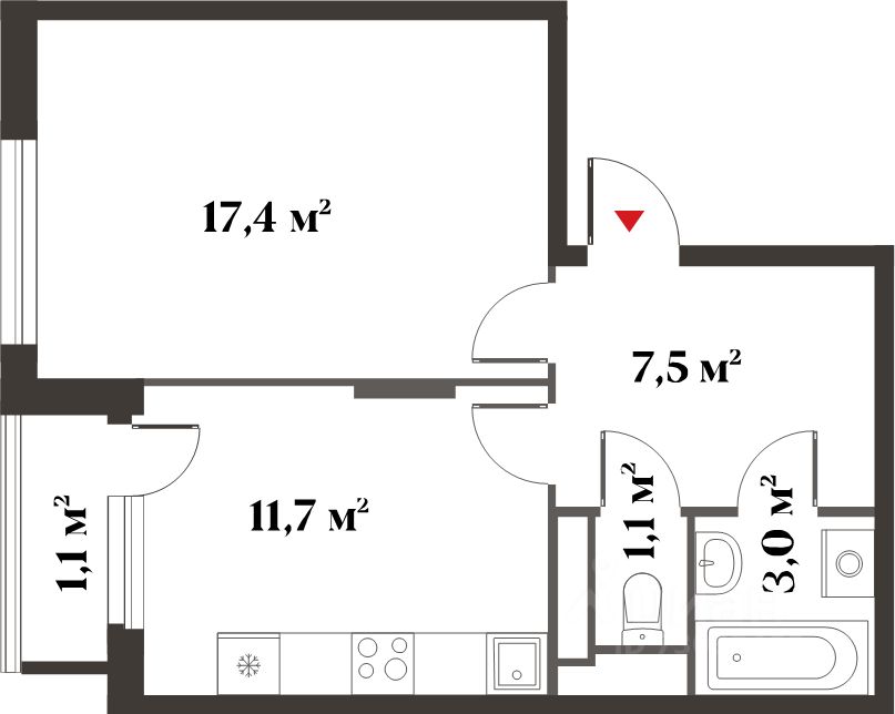 Общая площадь40,7 м²