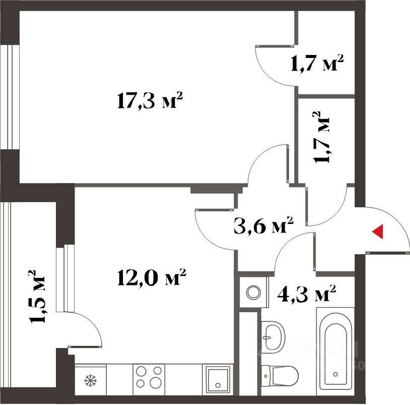 Продается 1-комн. квартира, 40,6 м²