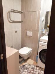Светлая просторная однушка с обзорным видом из окна, в нормальном жилом состоянии (требует необременительного косметического ремонта). Квартира расположена на высоком этаже: тихо и светло. Большая комната 19 кв.м с выходом на лоджию, кухня с полуэркером 9 кв.м. Чистая сантехника в санузле. В комнате на полу - ламинат, в нежилых помещениях - плитка. Окна выходят во двор на юго-западную сторону.