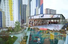 без машин. На территории детские площадки, спортивные зоны и зоны отдыха, теннисный корт, каток. В 3-х минутах от дома живописная набережная Москва-реки. Кафе и рестораны. Пляж, баня, лодки, сапы, водные мотоциклы и др.