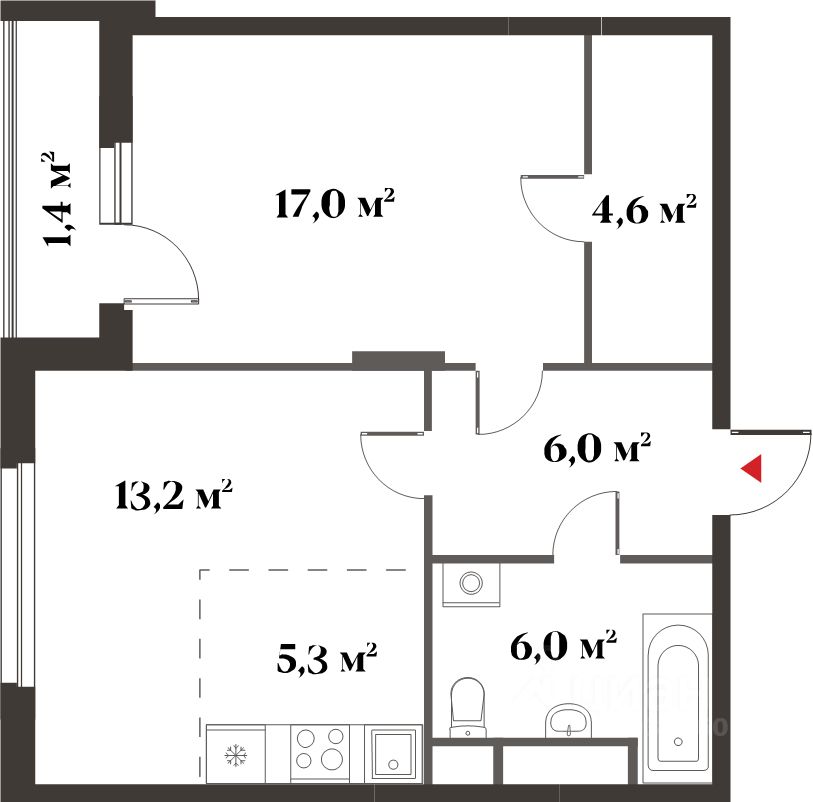 Общая площадь52,2 м²