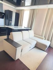Квартира с отличным ремонтом, в стиле модерн,что позволяет вам сразу въехать и наслаждаться комфортом. Просторная студия включает в себя кухонную зону, оборудованную современной техникой Бош, Хайер и уютную жилую зону. Санузел совмещенный, выполнен в современном стиле и оснащен всем:джакузи с гидромассажем и сантехника GROHE . В квартире есть все для комфортного проживания: мебель, бытовая техника и продуманная планировка,дубовая паркетная доска,подогрев полов DEVI.Кондиционер .