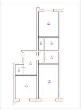 2 изолированные комнаты 14.6 м2 и 19.1 м2