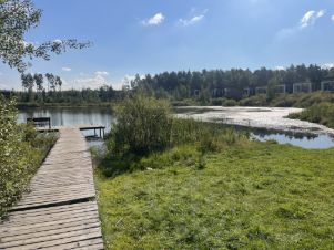 За комплексом в 3 минутах пешком ОЗЕРО Лесное, можно купаться и загорать.