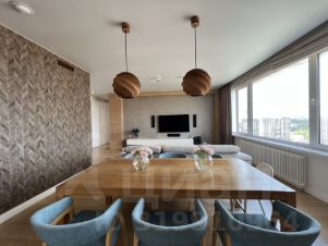 В квартире есть вся мебель и техника для жизни: по комнатам разведены 2 канальных кондиционера Мitsubishi, а также выведена приточная вентиляция и бризеры Tion, в постирочной стирально-сушильная машина AEG, кухонная техника NEFF, холодильник side-by-side и винный шкаф LIEBHERR. Диваны с электроприводом ROM, встроенная мебель MrDOORS, мягкая мебель в мастер-спальне производства Италия.