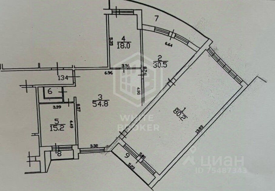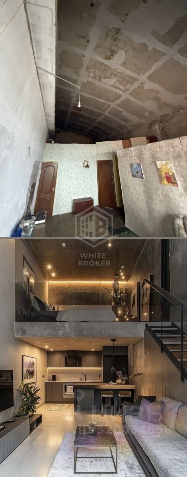 Общая площадь квартиры составляет 200 квадратных метров, из которых 183,5 метра — жилая площадь. Высота потолков в 6 метров создаёт ощущение простора и свободы. Окна выходят на улицу и во двор.
