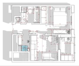Для квартиры подготовлен полный дизайн-проект на 52 страницах, который включает в себя: стилистическое решение, планировку, подбор мебели и материалов, планы напольных покрытий, электрооборудования, сантехники, потолка, дверей и т.п.