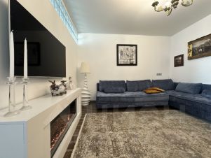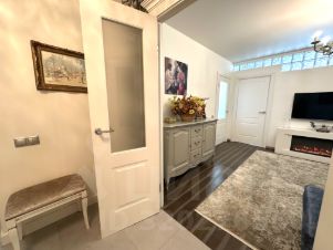 В квартире сделан качественный ремонт, все продумано до мелочей. Пол на кухне/входной зоне и санузле выложен плиткой (керамогранит). Теплый пол на кухне, в холле и санузле. Квартира оснащена кухонным гарнитуром + обеденный стол и стулья, духовым шкафом, холодильником, стиральной машиной, посудомоечной машиной, кондиционером, ТВ.