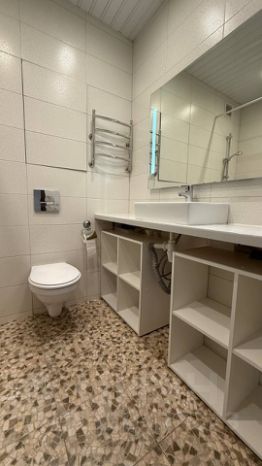 В квартире выполнен современный евроремонт. Просторная кухня площадью 18 кв. м оборудована всей необходимой техникой. Планировка включает две лоджии. Для вашего удобства в квартире имеется два санузла с ванной и душевой. В квартире установлены кондиционеры и два бойлера.