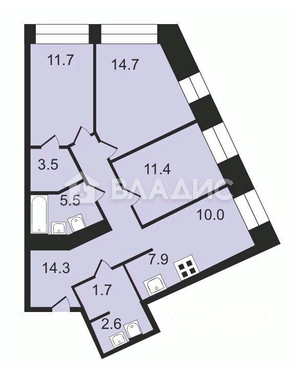 - Просторная кухня - гостиная, 3 спальни, 2 санузла, прачечная, 3 лоджии и гардеробная комната;