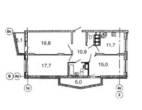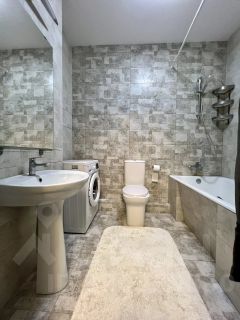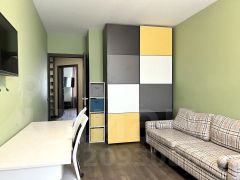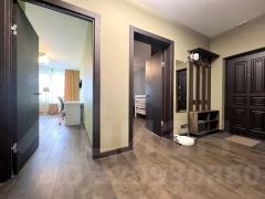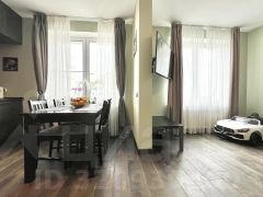 Просторная спальня 19,8 кв. метров с выходом на лоджию 3,1 кв. метров. Детская комната 17,7 кв. метров. Прихожая 10,9 кв. метров. Стены и потолки в комнатах под покраску. Полы в комнатах и кухне-гостиной половая доска. В санузлах плитка и тёплые полы. Во втором санузле бойлер с подачей воды в ванную комнату. Утеплённые лоджии, полы с подогревом. Межкомнатные двери и плинтуса производства Италии. Мокрые точки не перенесены.