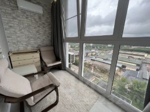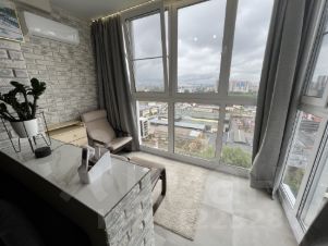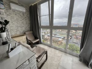 Потрясающая видовая квартира. Полностью укомплектована современной мебелью и техникой. На лоджии установлены панорамные окна. Очень красивый вид из окон.