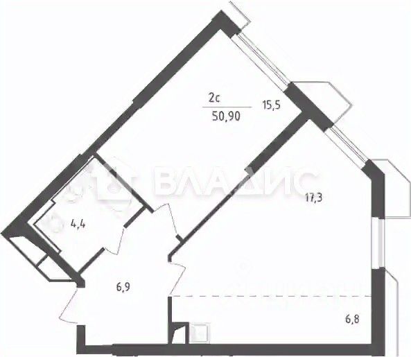 Просторная и уютная: общая площадь квартиры составляет 50,9 кв. м, из которых 32,8 кв. м — жилая площадь. Две изолированные комнаты и совмещённый санузел делают планировку удобной и функциональной.