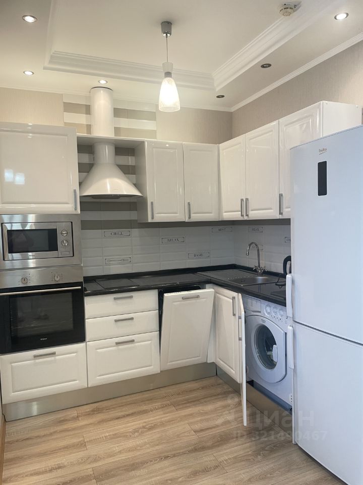 Техника: холодильник, варочная панель, духовой шкаф, вытяжка, посудомоечная машина, телевизор, стиральная машина автомат.