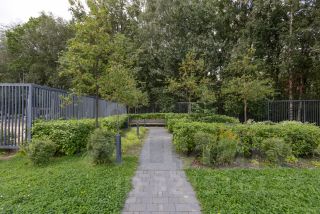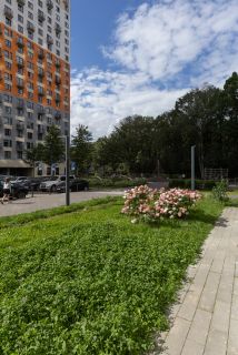 В доме есть закрытый двор с зонами отдыха озеленением. Рядом шикарный огромный лесопарк с озером и речкой с благоустроенной набережной, много детских площадок. Поблизости также ландшафтный парк Митино, оборудованные зоны пляжного отдыха, лыжная трасса.