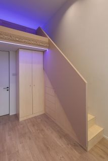 Далее по маршруту двух-уровневая очень уютная детская 12 кв.м со спальной зоной на втором этаже. О такой мечтает каждый ребенок. Напротив детской санузел с большой душевой.
