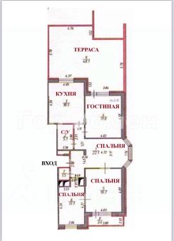 Параметры квартиры: Общая площадь по ЕГРН 98.8 кв.м, комнаты: 22,1+18,8+13,2+19,7, кухня: 18,5 кв.м., Уникальная квартира с очень интересной планировкой, собственной террасой 48кв.м. и балконом. 2 санузла, имеется гардеробная.