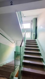 Квартира расположена на втором этаже девятиэтажного панельного дома, построенного в 1979 году. Из окон открывается приятный вид на тихий и зелёный двор. Рядом с домом детская и спортивная площадки идеальное место для отдыха и игр детей.
