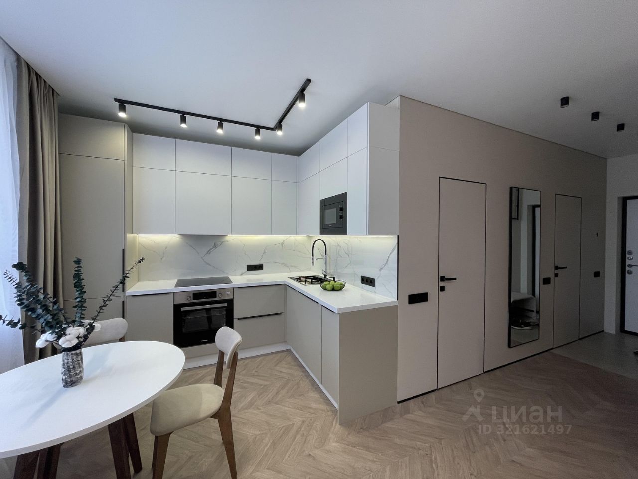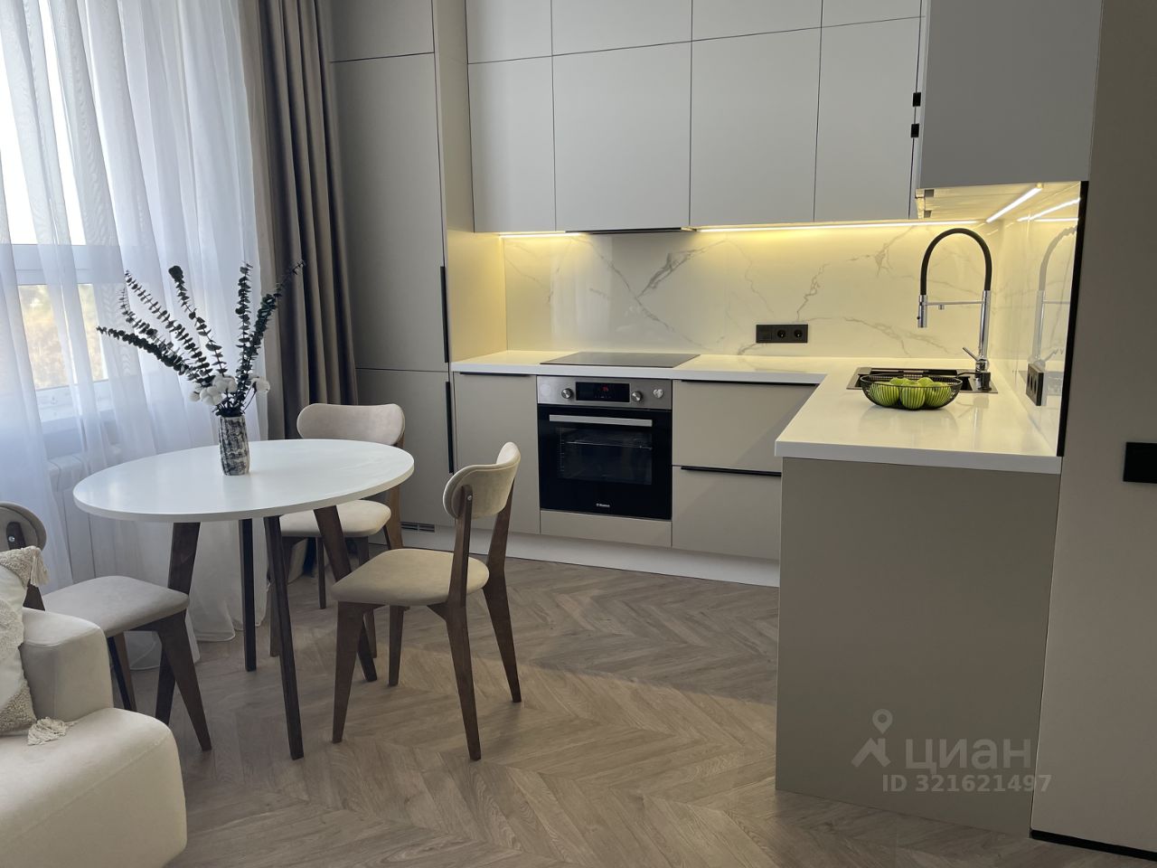 Квартира видовая с просторной кухней-гостиной и двумя комнатами, одна из которых, полностью меблирована под спальню. В комнате угловое окно с видом во двор, а также окно с выходом на панорамный балкон.