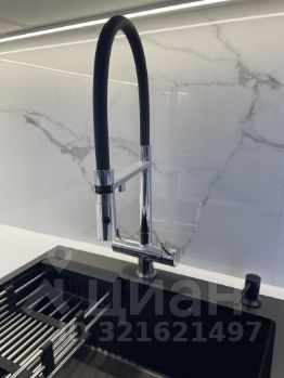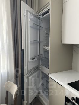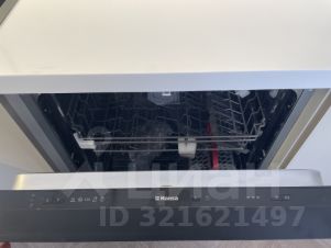 В кухонной зоне гарнитур со всей встроенной техникой ( плита, духовой шкаф, вытяжка, большая посудомоечная, микроволновка, высокий холодильник).