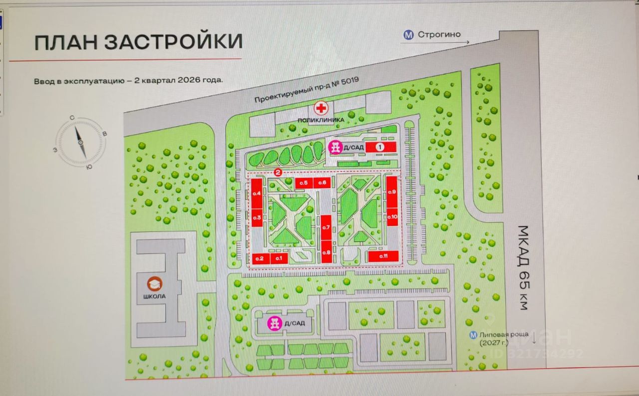 в 15 мин. пешком до будущей м. Липовая Роща, которая будет находиться на Рублёво-Архангельской линии, начинающейся от Москвы-Сити.