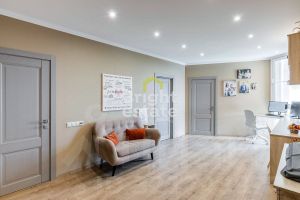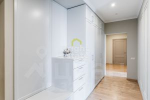 Интерьер выполнен в современном дизайнерском стиле: здесь органично сочетаются эстетика и функциональность. Кухня-гостиная, объединённая с прихожей, становится центром притяжения семьи. Пространство идеально зонировано: две спальни, кабинет, вместительная гардеробная, два санузла, кладовая и две лоджии, оформленные как обеденная и лаунж-зона - всё продумано для вашего комфорта.
