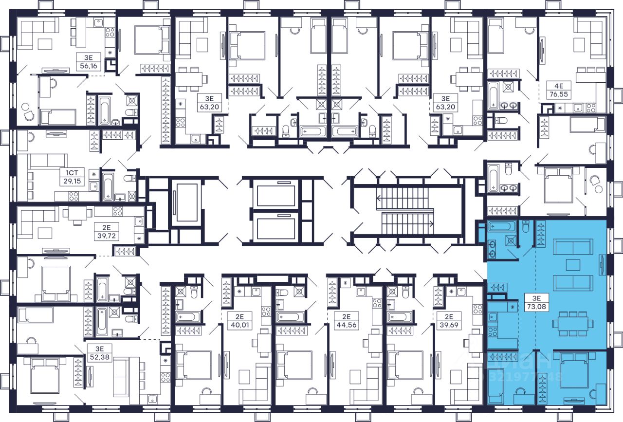 Продается квартира в ЖК Тетрис с 2 спальнями на 16 этаже 28 этажного дома. Общая площадь: 73.08 кв.м. Высота потолков 2.95 м. Срок сдачи 2 квартал 2026 г. Эскроу-счет. Застройщик ГК "Садовое кольцо".