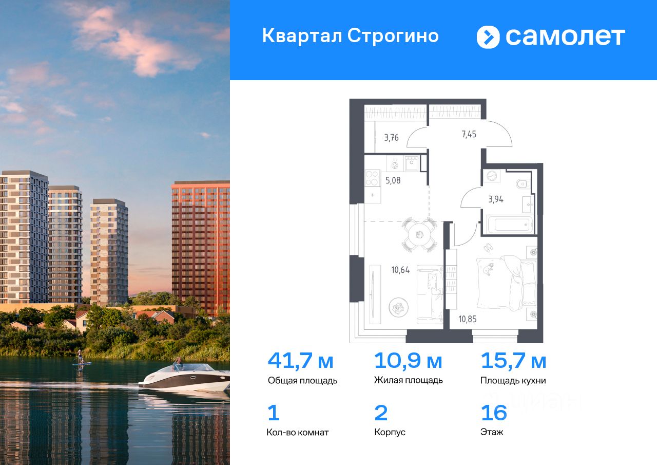Строим кварталы для жизни с заботой о будущем. Предлагается 1-комнатная квартира комфорт-класса 41,72 кв.м в корпусе 2 на 16 этаже, в ЖК "Квартал Строгино"