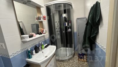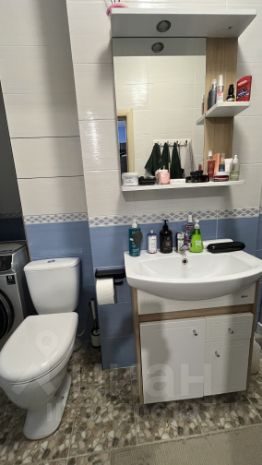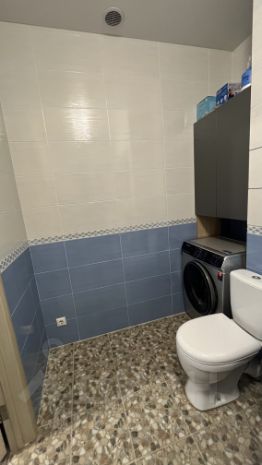 Совмещённый санузел 4,9 кв.м с душевой кабиной, нишей для стиральной машины.