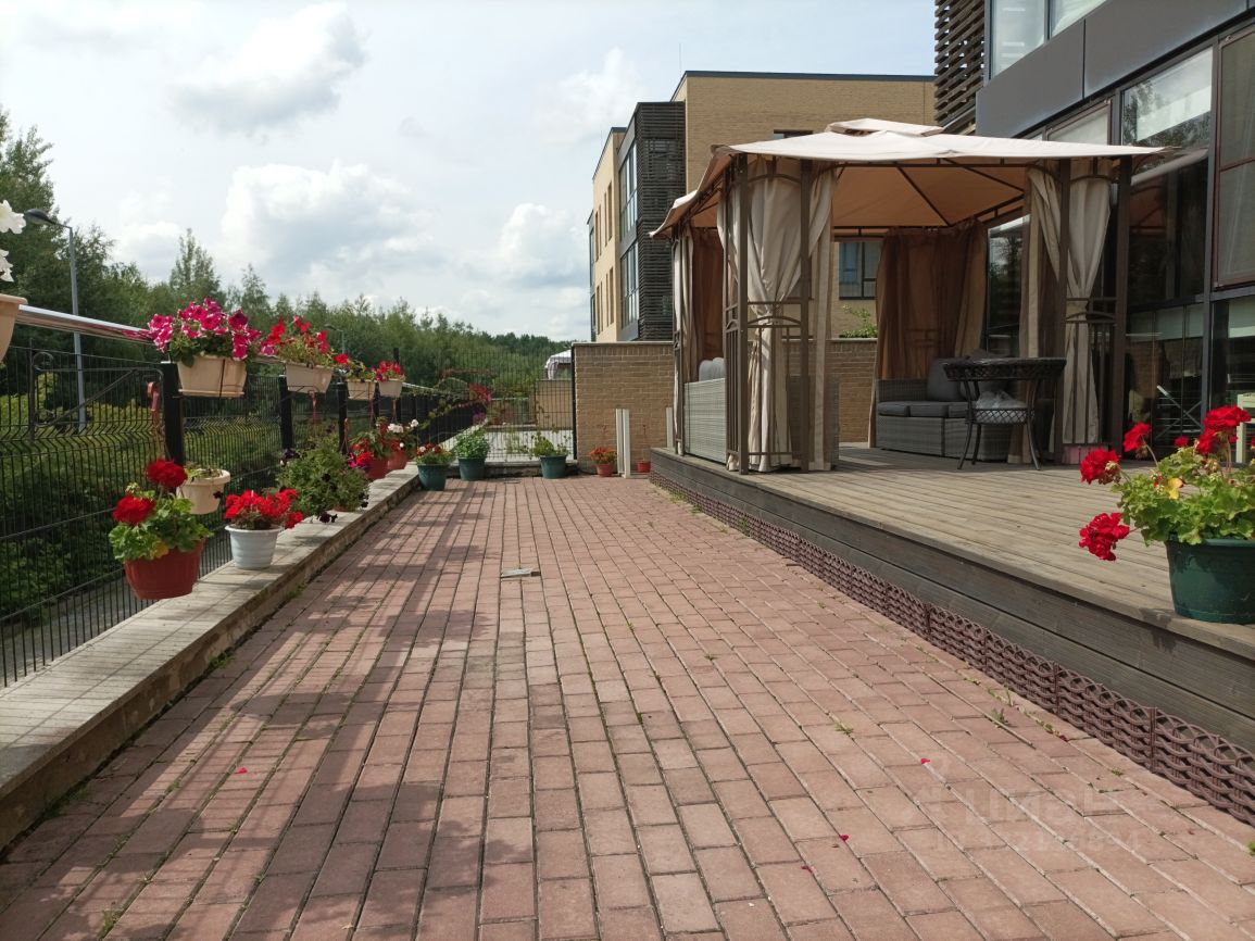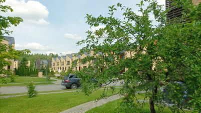 Квартира расположена на первом этаже, но в этом ее преимущество, так как только у первых этажей есть террасы, при этом квартира поднята над уровнем земли на полноценный цокольный этаж. Под окнами пруд, лес, природа, яблони...