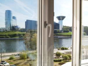 Четырехкомнатная квартира в доме на первой линии прогулочной набережной в Павшинской пойме. Уникальна своей планировкой, расположением и шикарными видами изо всех окон на Москва- реку и здание правительства Московской области.