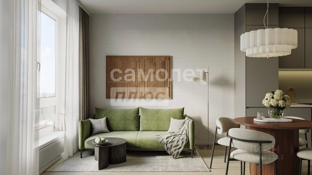Просторная гостиная совмещённая с кухонной зоной и уютной спальней с панорамными видами на город!