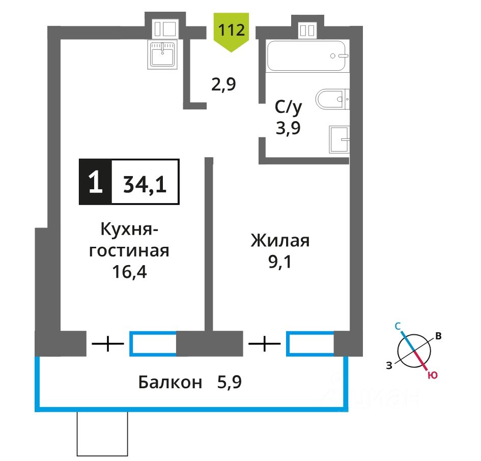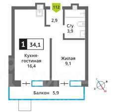 Продается полноценная однокомнатная квартира 34,1 кв.м. расположенная на 5-ом этаже с видом на лес, квартира имеет отдельную спальню 9,1 кв.м., кухня гостиная 16,4 кв.м. и просторный балкон 5,9 кв.м., высота потолков 3 м. Без ремонта.
