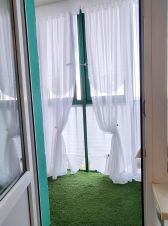 * Кухня 10 м² с выходом на широкую застеклённую лоджию с панорамными окнами